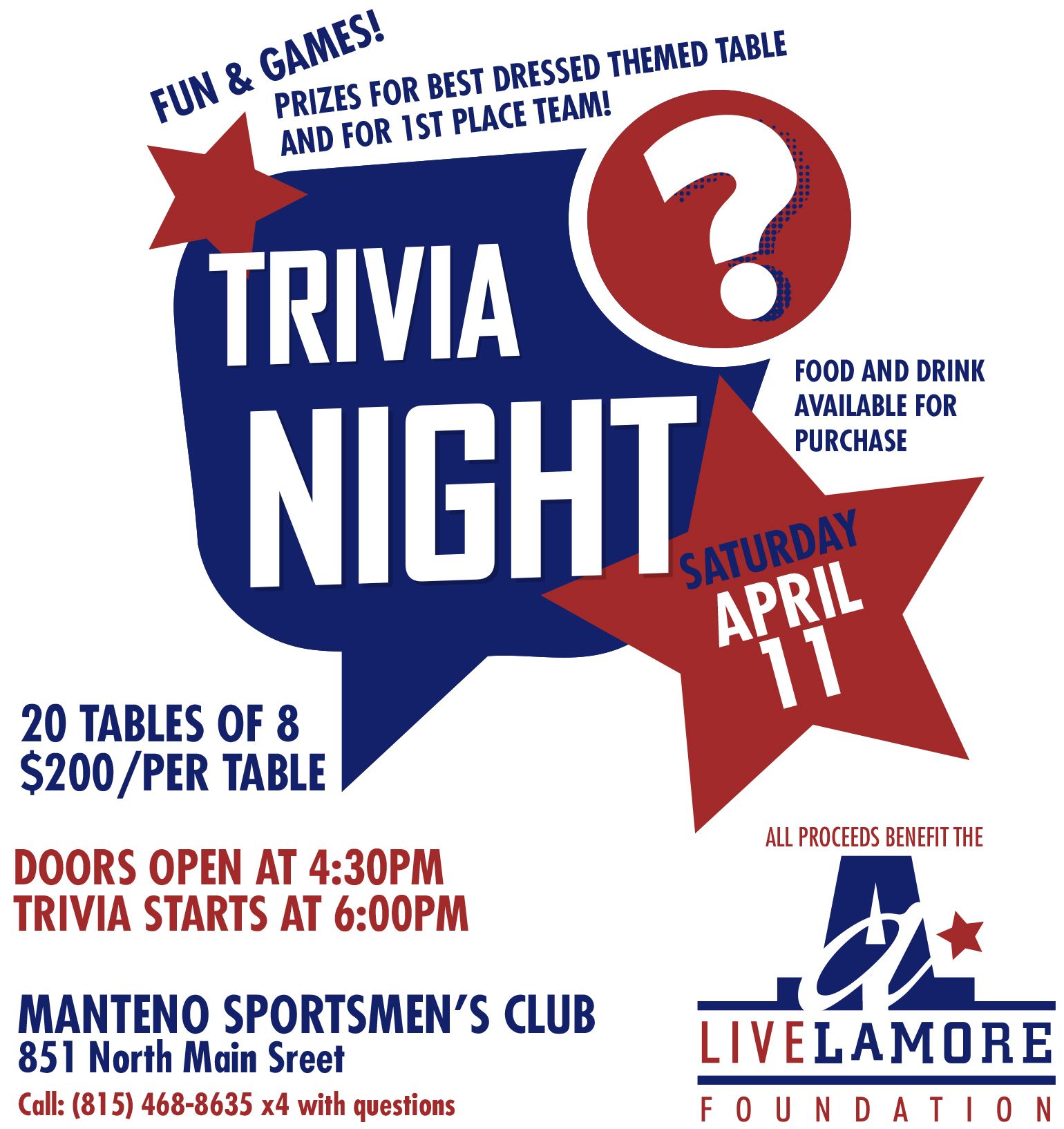 The Live LaMore Foundation is excited to host its Second Annual Trivia Night on Saturday, April 11th! Last year’s event was filled with teamwork, laughter, cold drinks, delicious foods, and unforgettable memories, and we can’t wait to build on that fun again this year.
